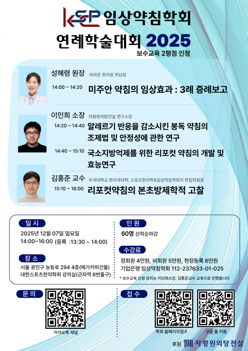 251207(일) 임상약침학회 연례학술대회 (보수교육 2평점 2h,정회원4, 비회원5) <접수마감>